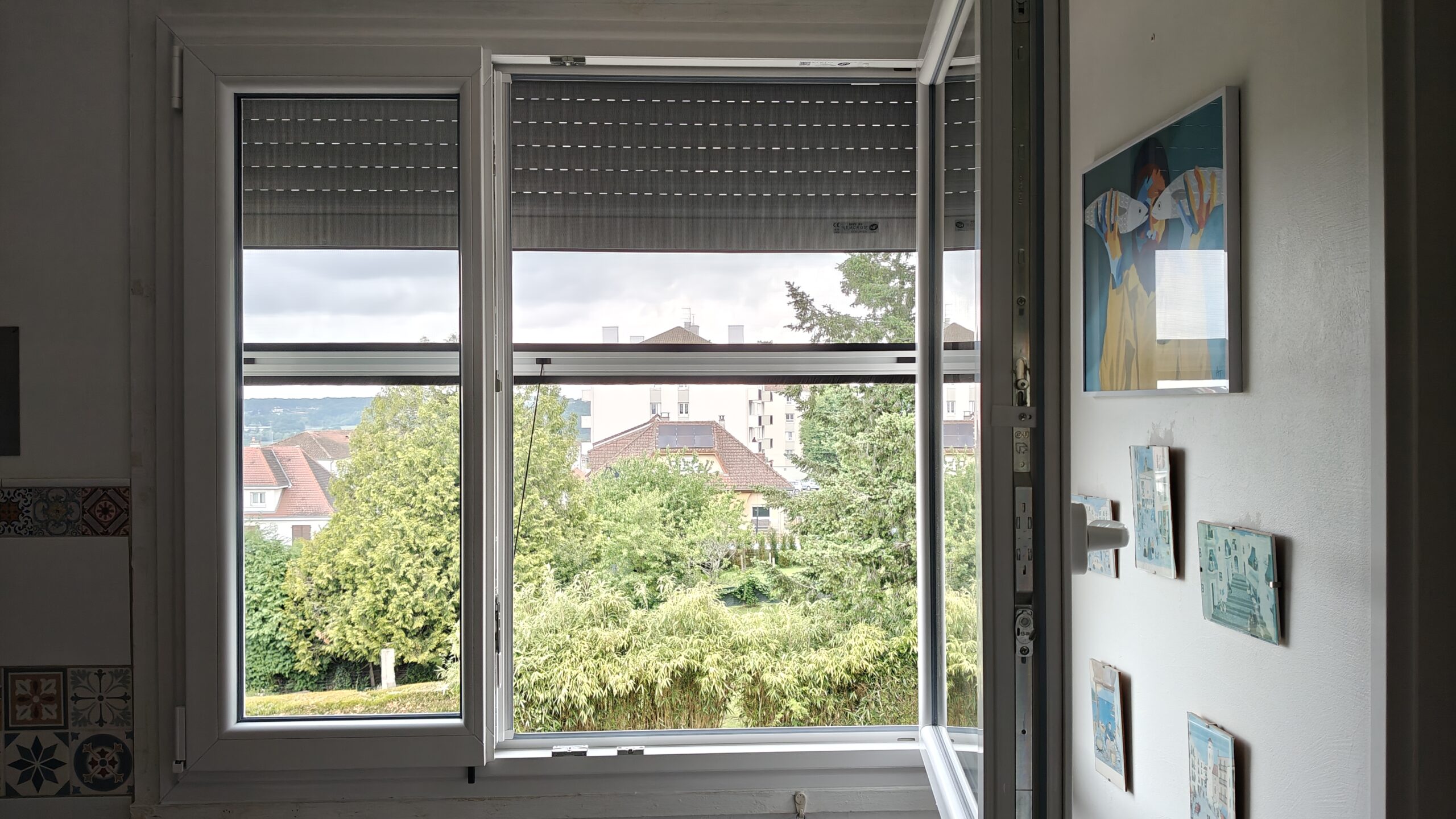 Fenêtre PVC avec volet roulant intégré solaire et moustiquaire